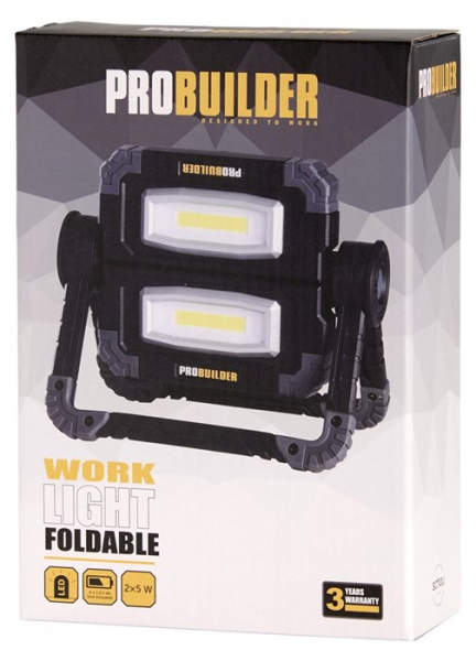 Arbbeitslampe LED 2 x 5 W, Arbeitsleuchte verfügt über 2 Lampen, die unabhängig voneinander für die gewünschte Lichtstärke eingeschaltet werden können, robuster, zusammenklappbarer Rahmen, Drehung der Lampen um 180° möglich, batteriebetrieben 4x AA, nicht im Lieferumfang enthalten, Lumen: 400/600