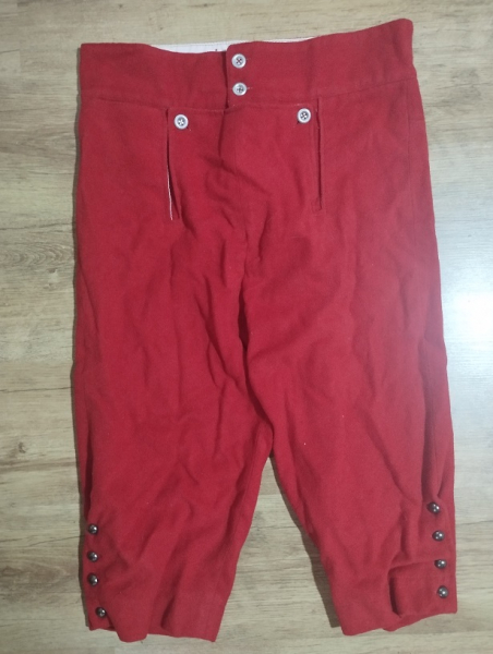 Kniehose 18. Jh. , Rote , nichtkratzende , angenehme Wolle , Uhrentasche , Taille max 105 cm verstellbar - Innenlänge 47 cm - Neuwertig - Privatverkauf vom Schuhnagel.de