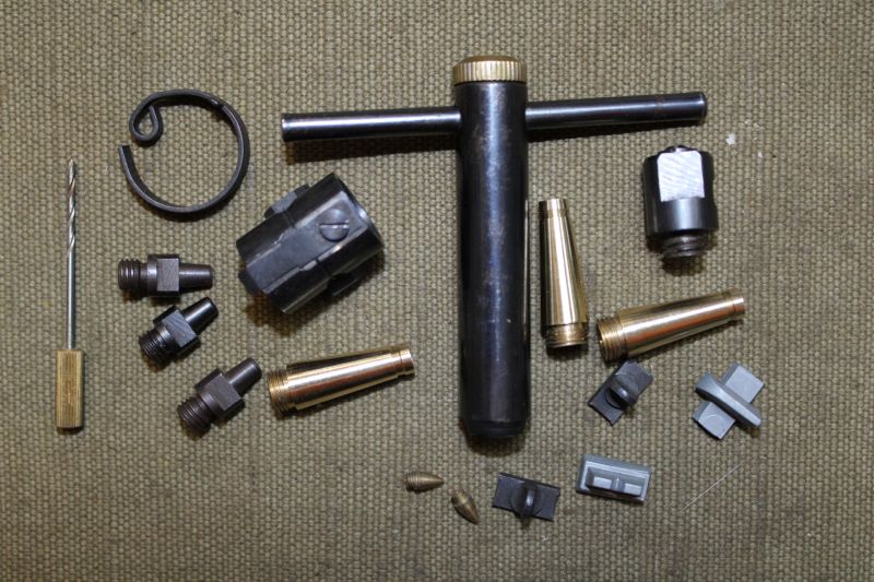 Verkaufe ein Konvolut (17 Teile) gebrauchtes, gut erhaltenes Vorderladezubehör bestehend aus: einschraubbarem Pistonsockel (M8) mit 3 Pistons und dazupassendem Pistonschlüssel, Räumnadel für Zündkanal, Füllstutzen, Feder für Pulverflasche, Korntunnel mit auswechselbarem Korneinsatz (Schwalbenschwanzbreite ca. 10mm), Spitzkorne, Balkenkorne, Visier und Dachkorn.