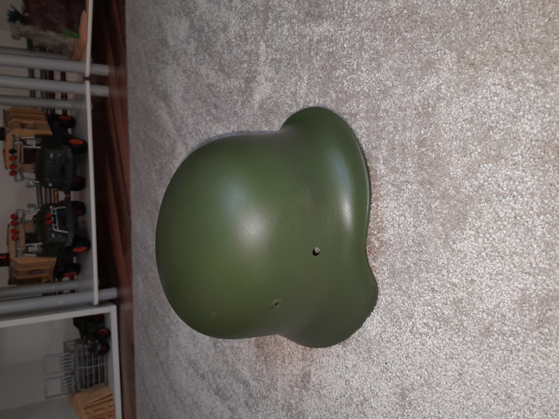 Es ist ein Original Stahlhelm, welcher nach dem Krieg von der Feuerwehr weiterverwendet wurde. Er war Schwarz Lackiert und hatte Innenfutter mit Nackenschutz . Ich habe ihn abgeschliffen und Nato Grün Lackiert. Die beiden Stempel an den bekannten Stellen sind vorhanden , aber schwach.Schönes immer Seltener werdendes Deko Teil. Selbstabholer Willkommen und erwünscht, falls möglich. Der Versand ins Ausland ist gegebenenfalls höher. PS.unter dem Lack kein Rost usw.alles Perfekt. Es ist nur die Glocke, in der Auktion. Der Rest ist nicht mehr da.