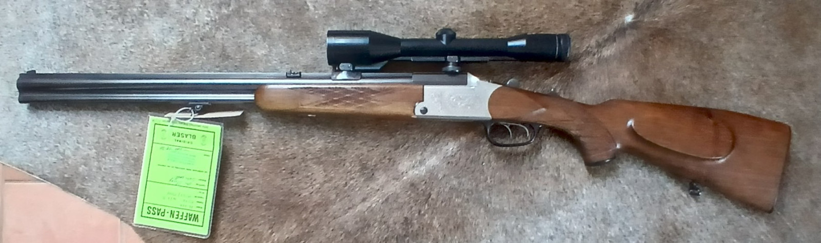 Kaliber: 7x57R+12/70; Verschluss ist dicht; Läufe sind blank; Rückstecher