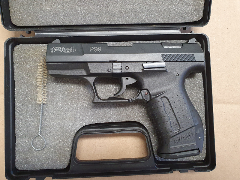 Hallo biete eine Automatic Pistole Modell Walther P99.IM NEU WERTIGEN ZUSTAND.WURDE NUR EIN SCHUSS ZUR PROPE GEMACHT.MIT DER ALTEN PTB 637.FUNKTION IST GEGEBEN.ZUBEHÖR KOFFER . BESCHREIBUNG.BÜRSTE.