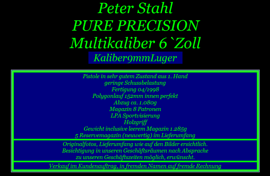 Artikel-ID: 20346953 ArtikelNr. des Verkäufers: 12527 Kategorie: Grosskaliber Kurzwaffen > Sportpistolen > Peters Stahl