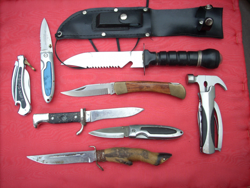 Sehr schönes Konvolut / Lot Messer und Messerscheiden. Verschiedene Hersteller und Erhaltungen. Alle Stücke gebraucht. Zustand siehe Fotos, die Bestandteil der Artikelbeschreibung sind. Keine Garantie und keine Rücknahme.