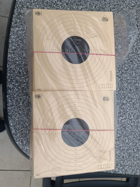 Biete hier 1000 Luftpistolenscheiben ( 4 Pakete a 250 Scheiben) in der Größe 17x17 cm zum Kauf an. Die Scheiben sind neu und werden wegen Aufgabe des Schießsports verkauft.