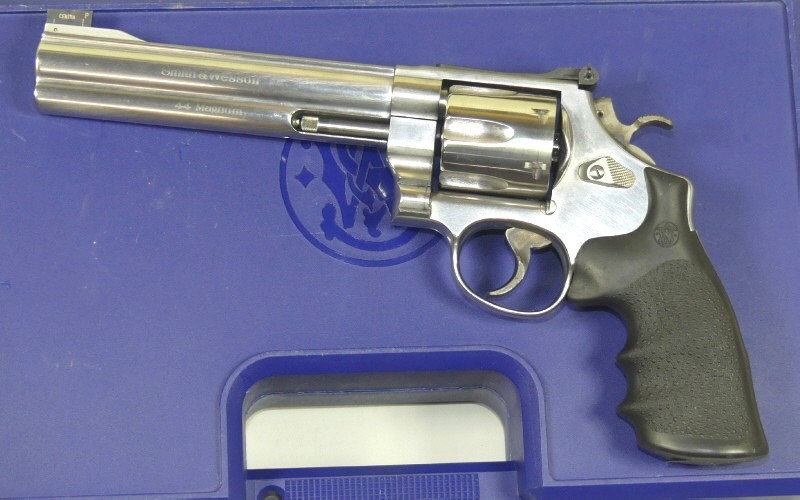 Wir bieten Ihnen hier im Kundenauftrag einen Smith & Wesson 629 Classic Kaliber .44 Magnum. Rostfreie Stainless Variante. Super Abzug - sehr trocken auslösend. Lauflänge 6,5" = 165 mm. In Höhe und Seite verstellbare Mikrometervisierung. Centra Target Korn. Die Auslieferung erfolgt im original, abschließbaren Smith & Wesson Koffer.