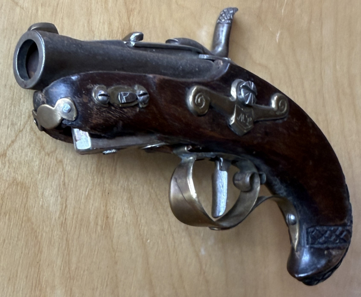 Kleine Vorderlader Pistole als Feuerzeug für Gas und mit Feuerstein