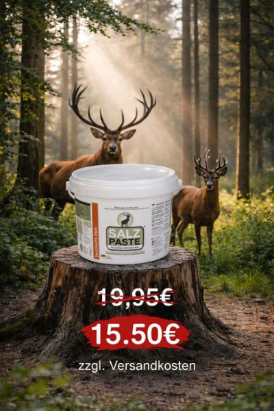Diese Salzpaste ist ein hochwertiges Mineralprodukt mit pastöser Konsistenz. Durch die flexible Anwendung besteht die Möglichkeit, das Wild an jeder gewünschten Stelle im Revier optimal mit den erforderlichen Salzen und Mineralien zu versorgen. Durch die handliche Verpackung können Sie die Salzpaste bei jedem Reviergang dabei haben. Einfach gewünschte Salzmenge auf einen Baumstumpf oder Bruchholz aufstreichen und aushärten lassen. Waidmanns extra Bonus – Salzpaste kann man nicht stehlen.