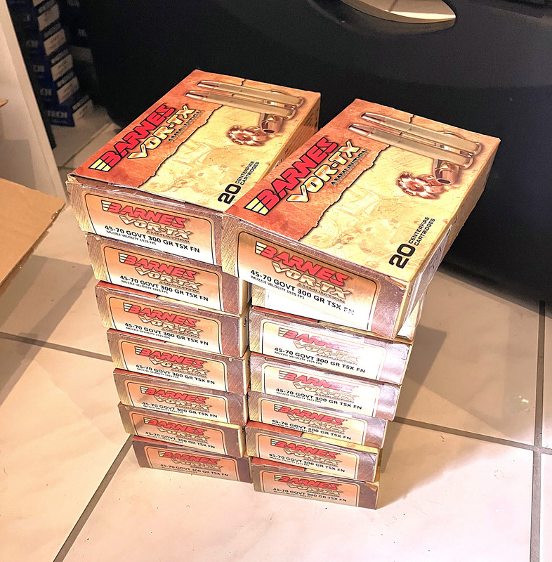 Versteigert wird die abgebildete bleifreie Jagdmunition 280 SchussBarnes .45-70 Gov. VOR-TX TSX FN 19,4g/300grs.