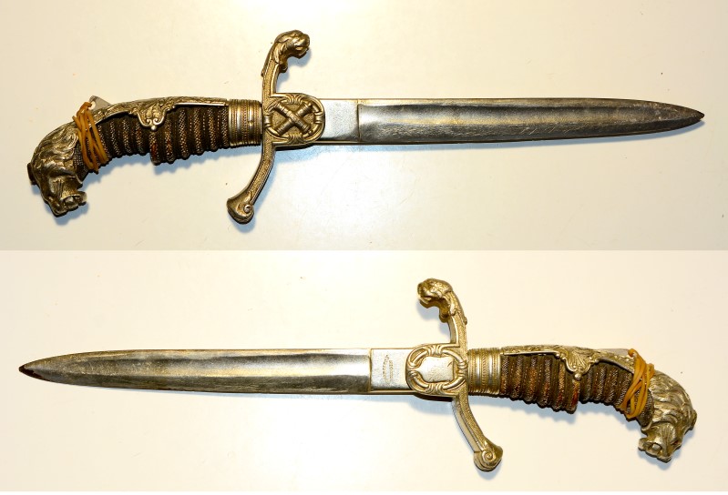 Französischer Grabendolch 1. Weltkrieg, hergestellt aus einem deutschen Artilleriesäbel, Klingenlänge 23,5 cm, guter Zustand, keine Scheide
