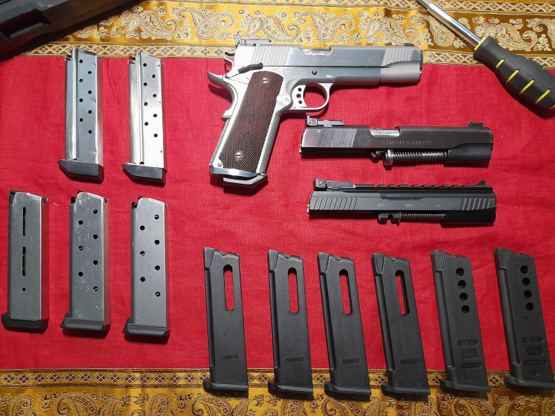 Da ich Platz auf meiner WBK brauche, verkaufe ich mein erstklassiges Springfield 1911 Trophy Match Set mit insgesamt drei Kalibern – die .45ACP (.45Auto) Grundwaffe und zwei Wechselsysteme (9mm Luger von Springfield und .22lr von STI) und viele Magazine. Durch den erstklassigen Abzug und die Extras der Waffe, sowie die verschiedenen Kaliber ist diese perfekt für Sportschützen.
