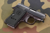 Halbautomatische Pistole, Westentaschenpistole, Selbstladepistole mit außenliegendem Hahn, Magazin- und Drehhebelsicherung, eine der kleinste Taschenpistolen der Welt: