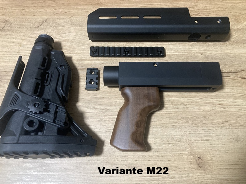 Angeboten wird ein taktisches Bodykit/Chassis angelehnt an FN FAL und militärischen Schrotflinten, bestehend aus Griff-Einheit, Schaft höhen/längenverstellbar, und Picatinny/Mlok-Handschutz. Passend für Snowpeak M22 und M25 (aka Airmax, Artemis, SPA, SMK, Onix etc etc). Das Kit verleiht dem Luftgewehr ein retro-militärisches Aussehen und erweitert die Möglichkeiten für Upgrades immens.
