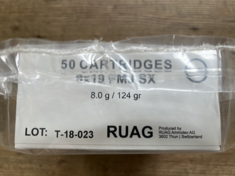 Zum Verkauf stehen 1000 Schuss RUAG 9x19 FMJ SX 124 GR (Sintox).