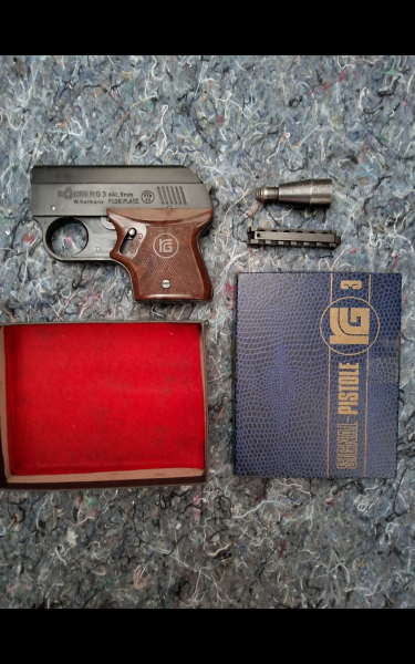 Eine Gas Signal Pistole Röhm RG 3 Kaliber 6mm Platz, PTB 33 in gebrauchtem Zustand. Ich habe damit wenig geschossen. Funktion ist Einwandfrei. Oberfläche hat leichte Abnutzung. Karton, Becher und bei Sofortkauf lege ich Platzpatronen und Signalsterne dabei.