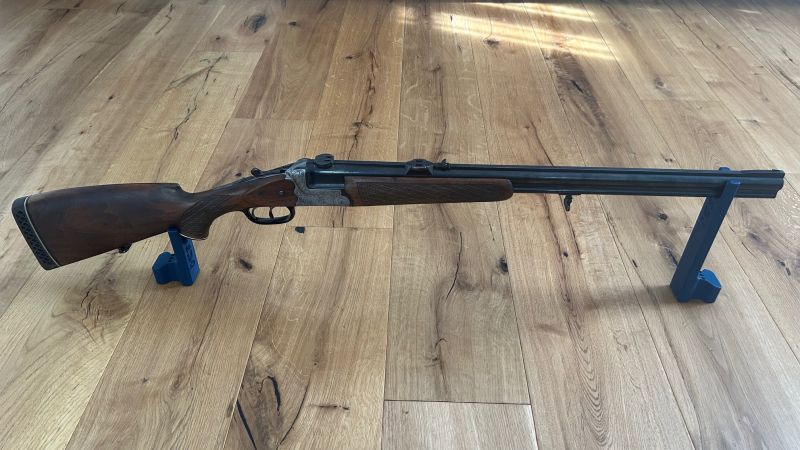 Zum Verkauf steht eine hochwertige Bockbüchsflinte der renommierten Waffenschmiede Heym (Münnerstadt). Diese Waffe besticht durch ihre führige Bauweise und die erstklassige Verarbeitung, für die Heym-Waffen aus dieser Ära bekannt sind.