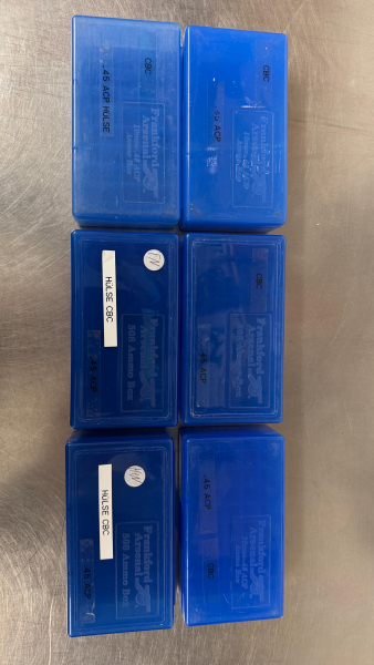 Verkauftt werden hier 6 Stück Munitionsboxen für Kaliber .45 ACP der Marke Frankford Arsenal. Sie sind gebraucht aber unbeschädigt. Einmal in die Spülmaschine und die sind wie neu.