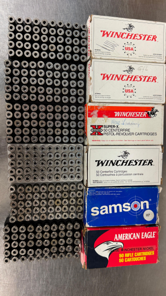Verkauft werden hier 300 Stück Hülsen im Kaliber .357 Magnum. Marke Winchester USA Nickel. Die Hülsen sind gereinigt und entzündert.