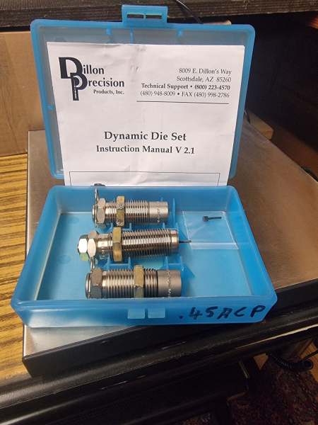 1 Stück Dillon Matrizensatz 3-teilig Hartmetall, DIE Set, neuwertig, Kaliber .45 ACP / GAP