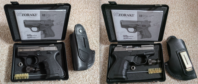 Lieferumfang: Zoraki M906 Titan im Koffer mit Beschreibung sowie Reinigungsbürste, 15mm Abschussbecher, 1x Mündungsschoner und 1x Lederholster, siehe Bilder