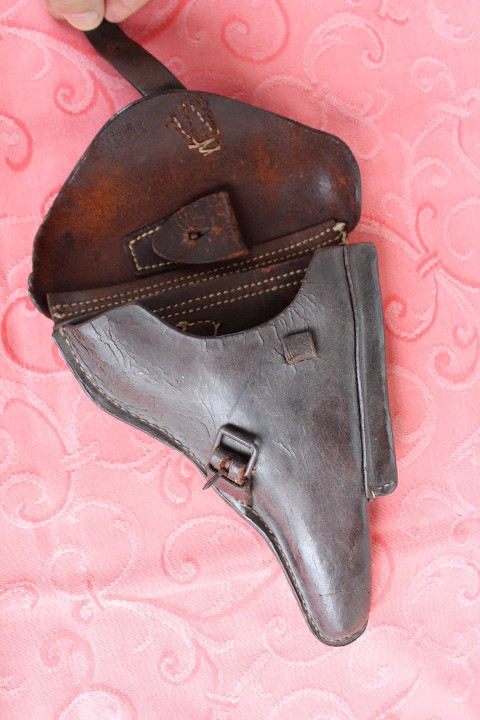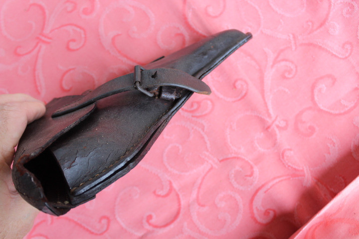 In noch unberührtem Fundzustand. Noch nicht gefettet und auch nicht gereinigt. Die Oberfläche ist etwas angehärtet sonst ist das Leder noch weich.