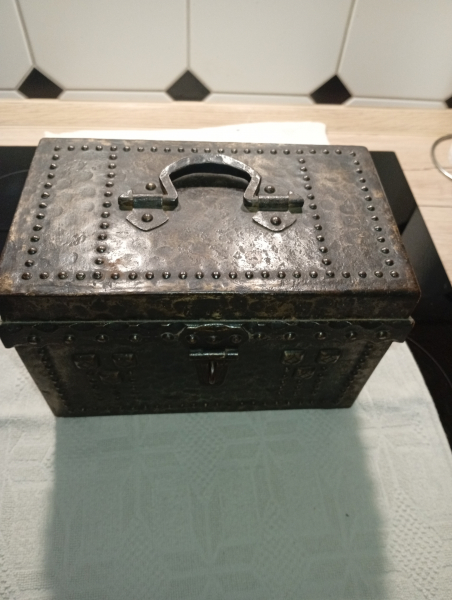Biete eine antike Eisenkassette vermutlich 19.Jahrhundert an. Die Maße der Kassette sind : Länge 26 cm, Breite 15 cm und Höhe 16,5 cm.
