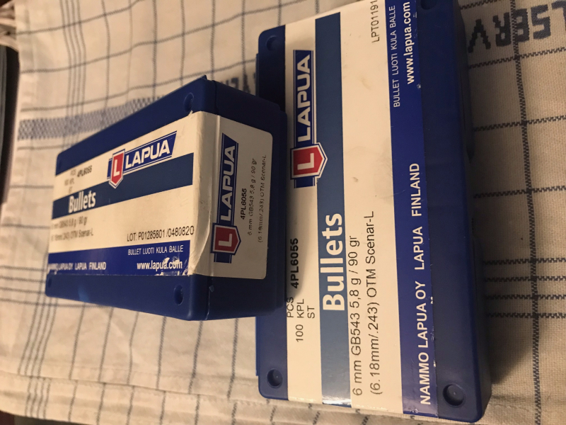 Von Privat : 200 Geschosse - Lapua Scenar - .243 Diam. - 90gr, 2 Packungen noch versiegelt- siehe Bild - Von Privat, daher keine Garantie oder Rücknahme - Versandpauschale 6 Euro - ins Ausland mehr, evtl bitte Anfragen