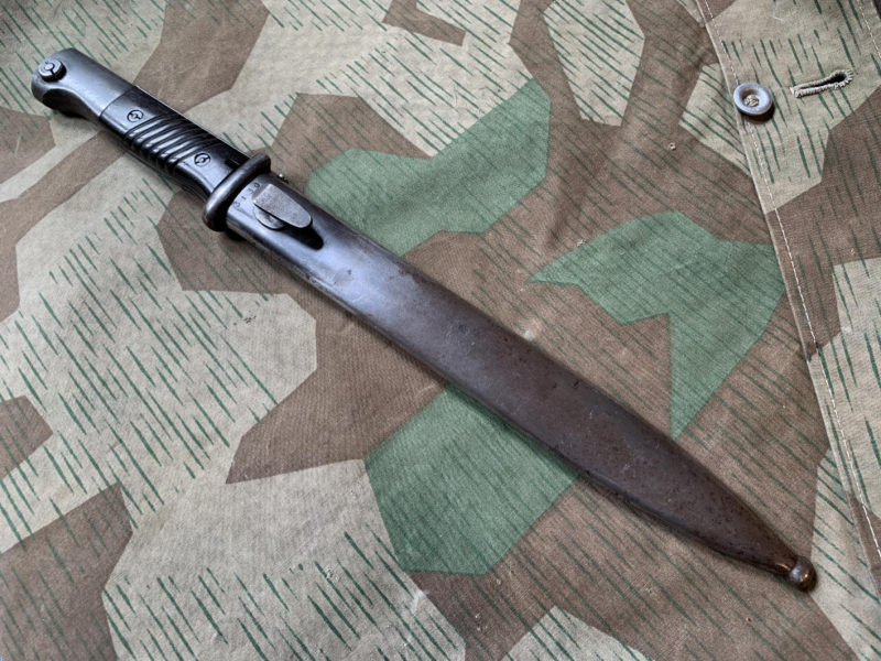 Angeboten wird ein in allen Teilen originales Bajonett zum K98. Hersteller E. u. F. Hörster 1940 auf Klinge und Scheide gestempelt.