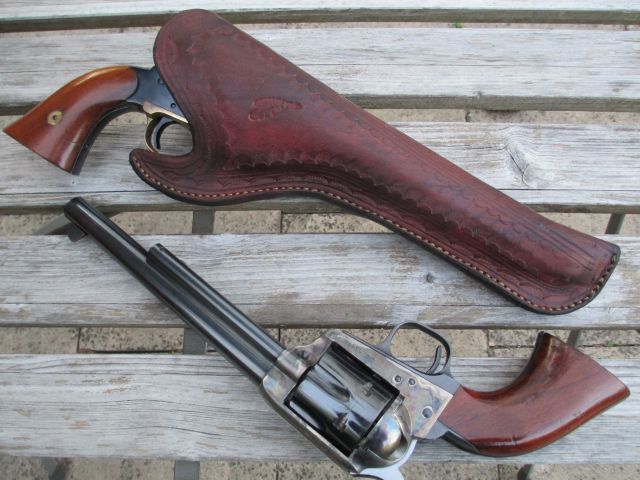 Beboten wird ein von mir in Handarbeit aus Deutschem Rindsleder hergestelltes Holster, Rechtshand . Passt für 7,5 ZB.1873 Saa.Der hier abgebildete Saa1873 bzw.VL Revolver 1858 in 7,5 zoll ist nicht gegenstand der Aktion. Beboten wird nur das Holster,Rückenschlaufe passst für8 cm Gürtel.