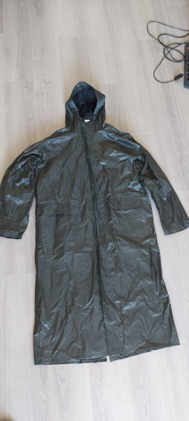 Wasserdichter Regenmantel mit verdecktem 2-Wege-Reißverschluss, heißverschweißten und wasserdichten Nähten, verstellbarer Kapuze, elastischen Sturmbündchen in den Ärmelenden und großem Ventilationsschlitz am Rücken. Außentaschen sind gegen das Eindringen von Wasser geschützt. Farbe: oliv.