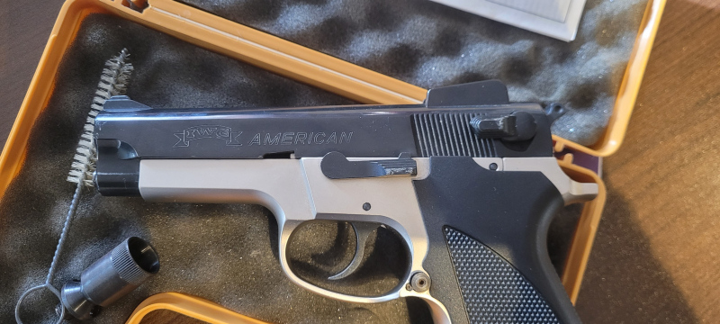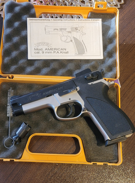 Hier meine IWG American Bicolor in 9mm PAK mit originalem Koffer, Abschussbecher, Anleitung etc.