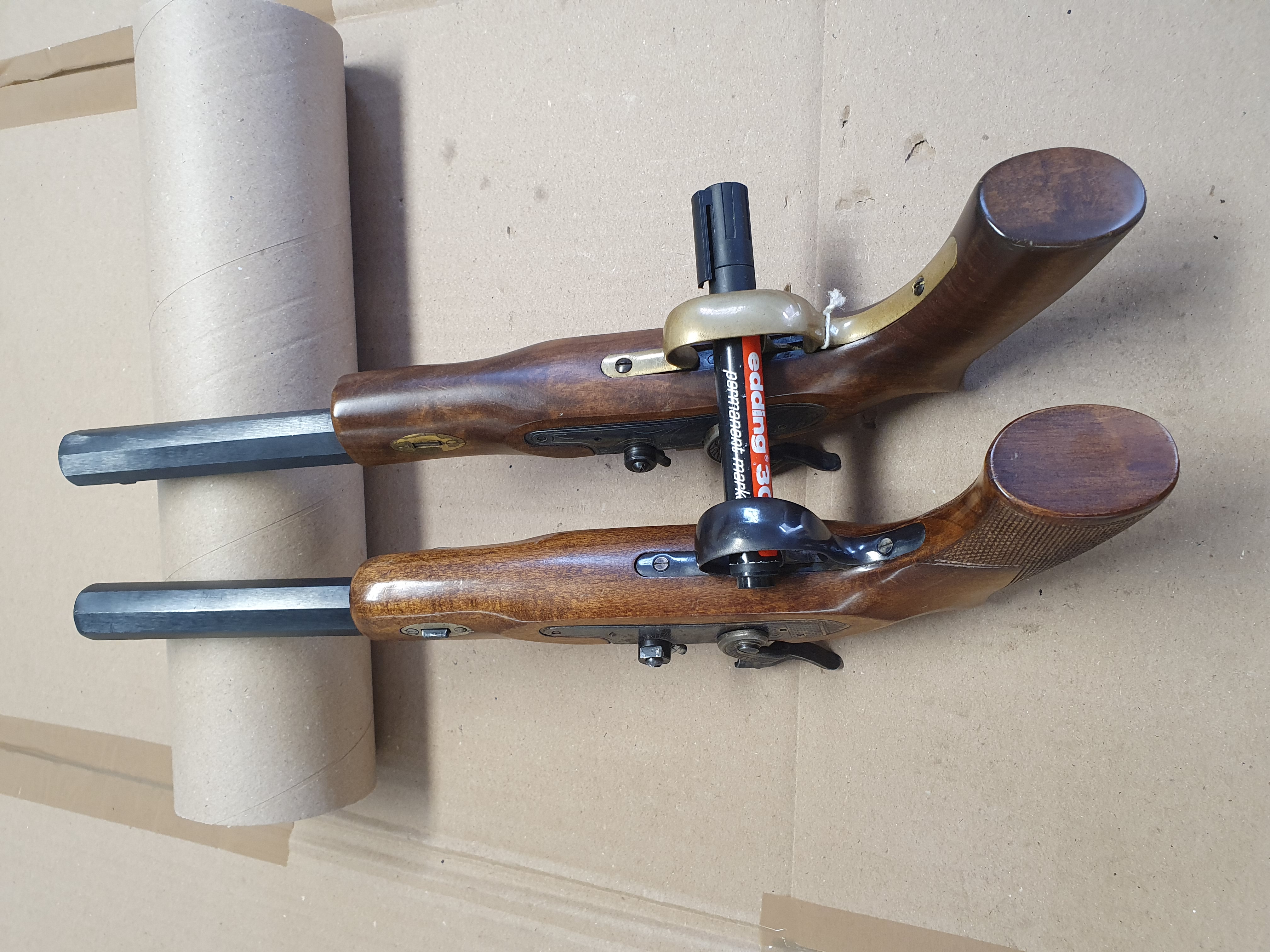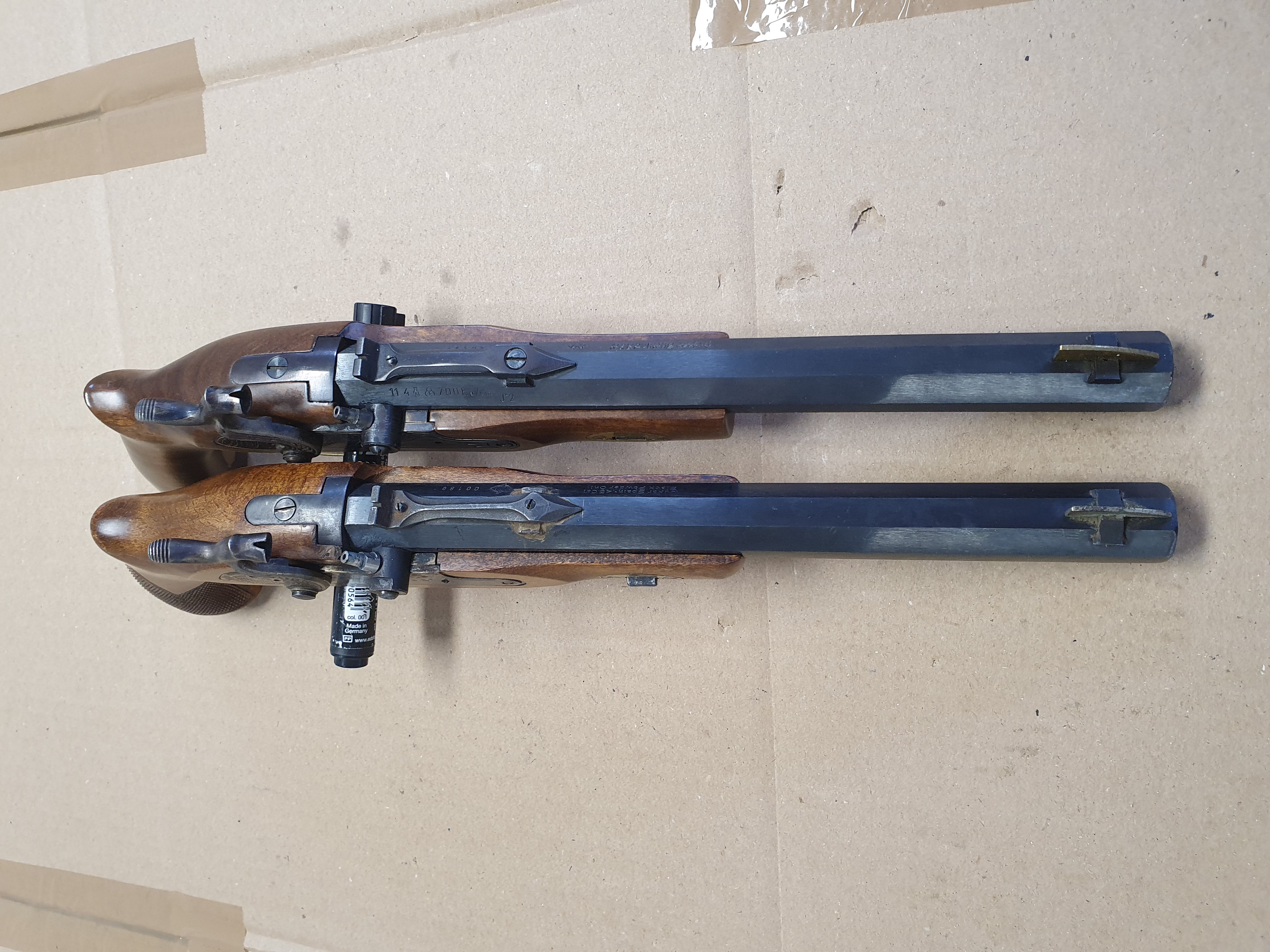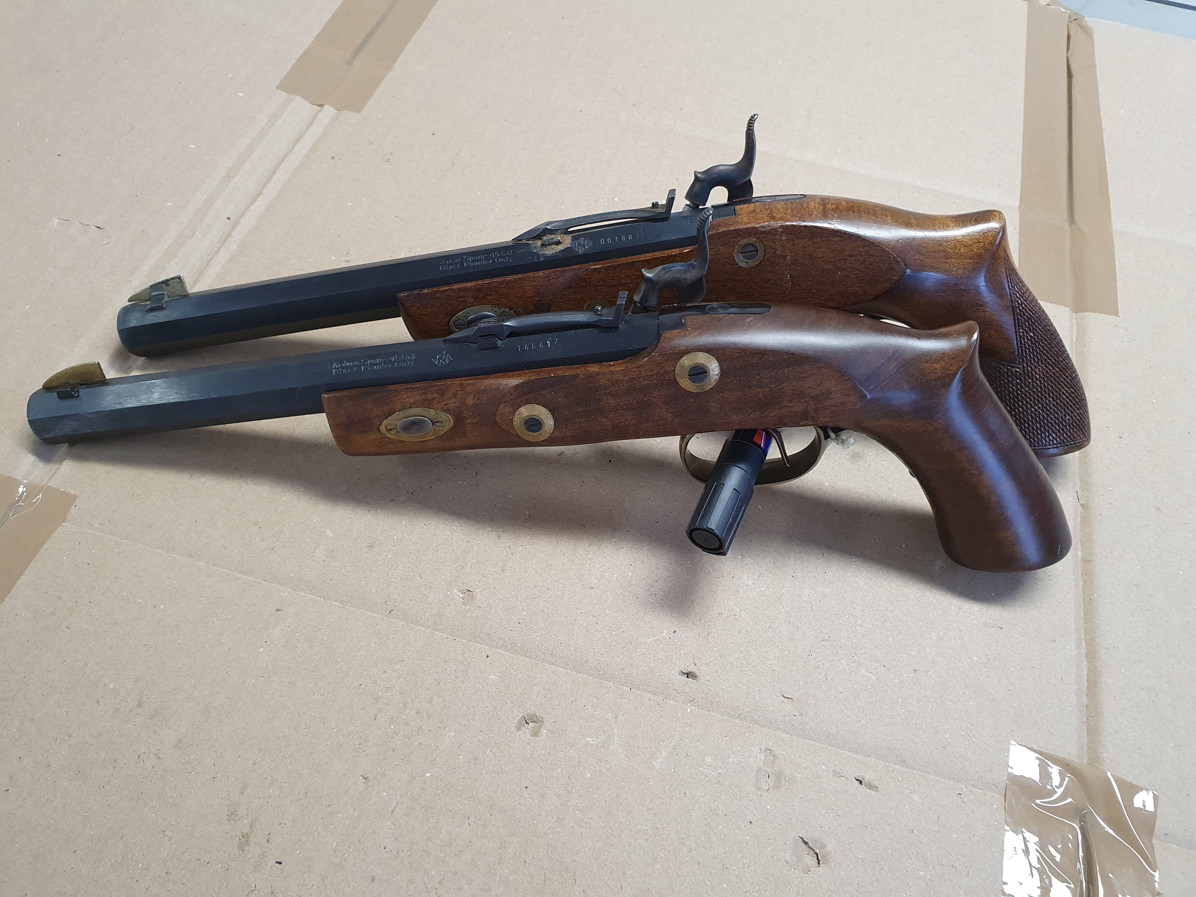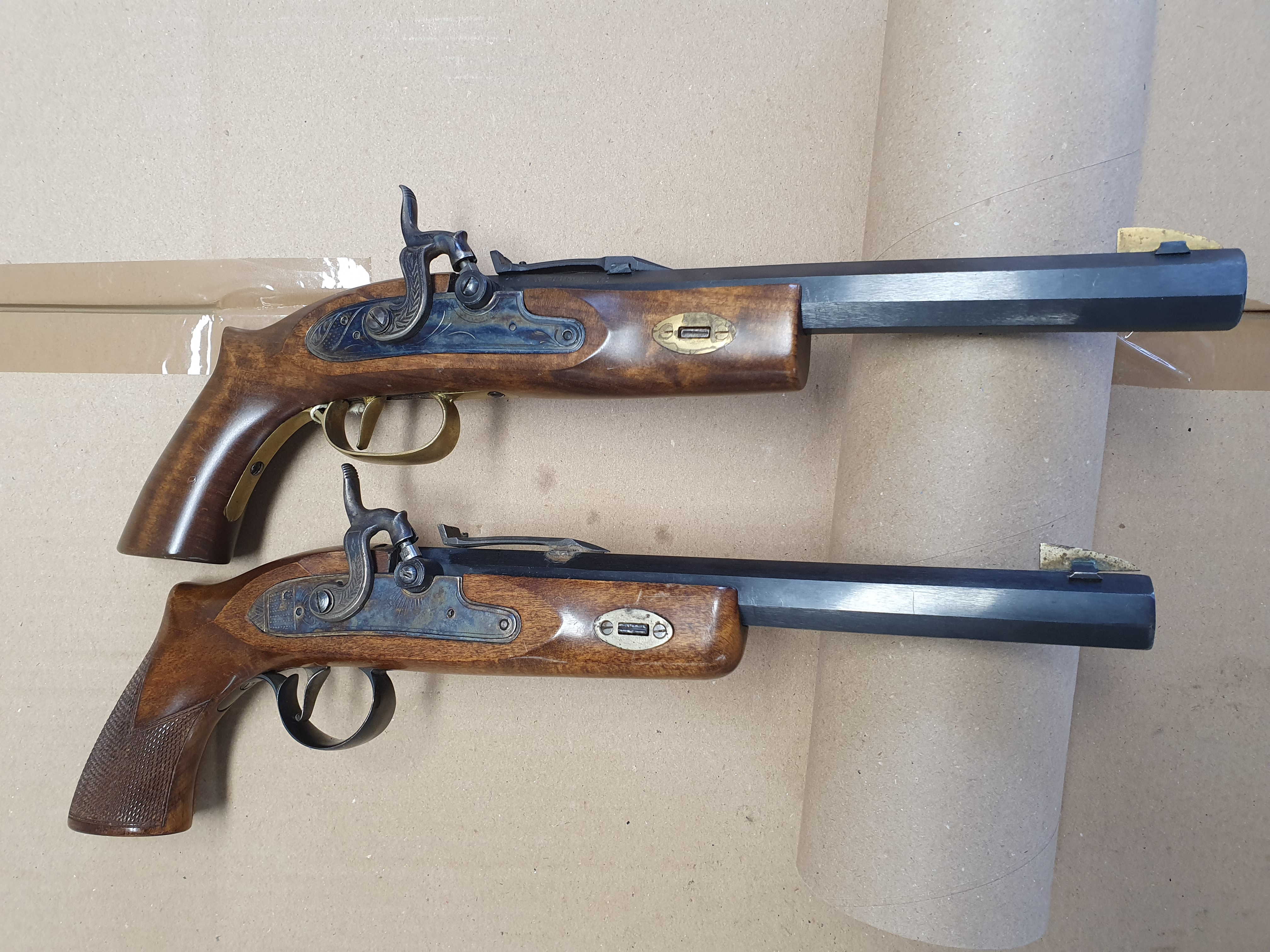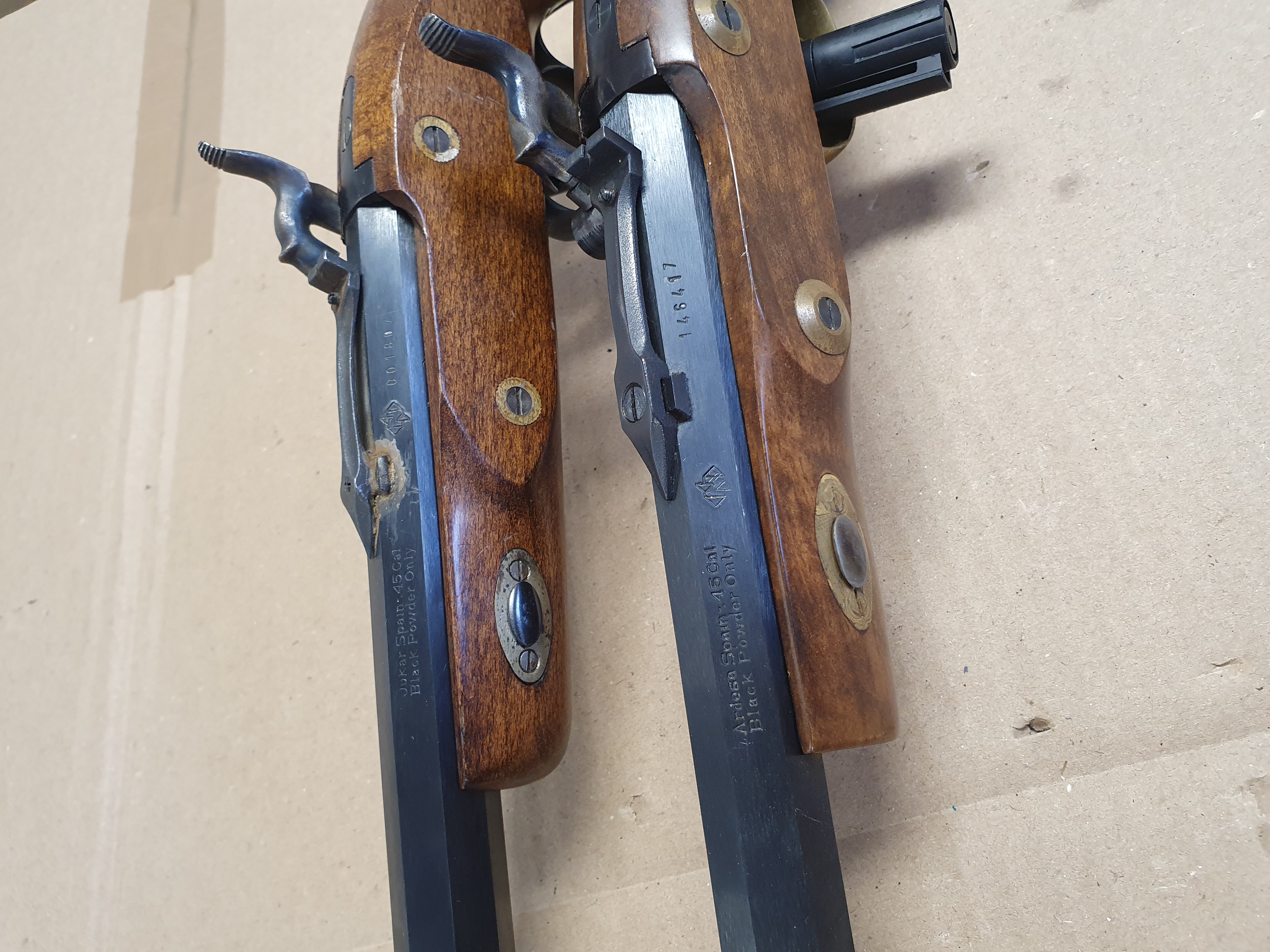 Zwei Stück Schwarzpulver Vorderlader Pistolen cal .45 Black Powder Only. Verschiedene Hersteller.