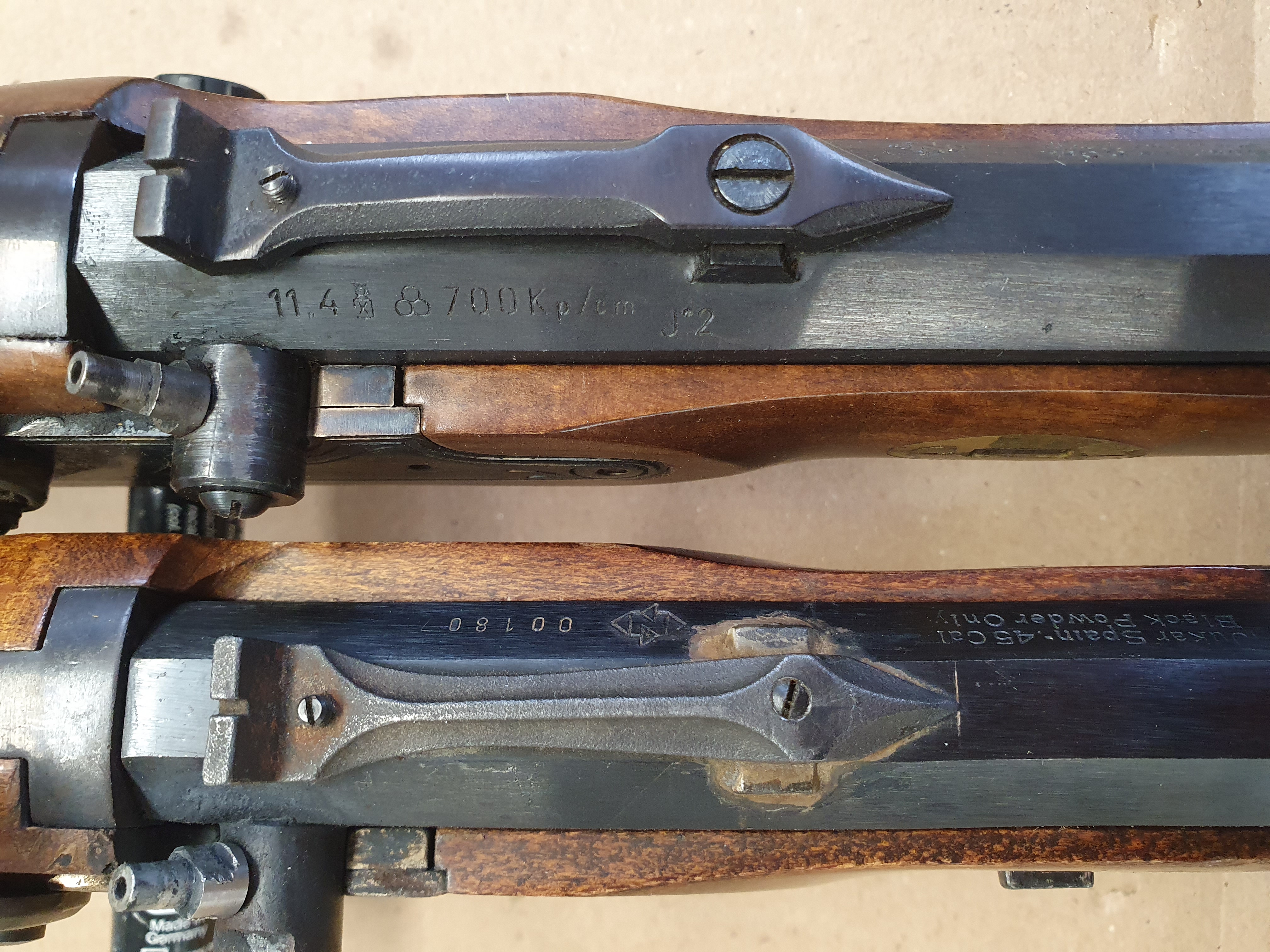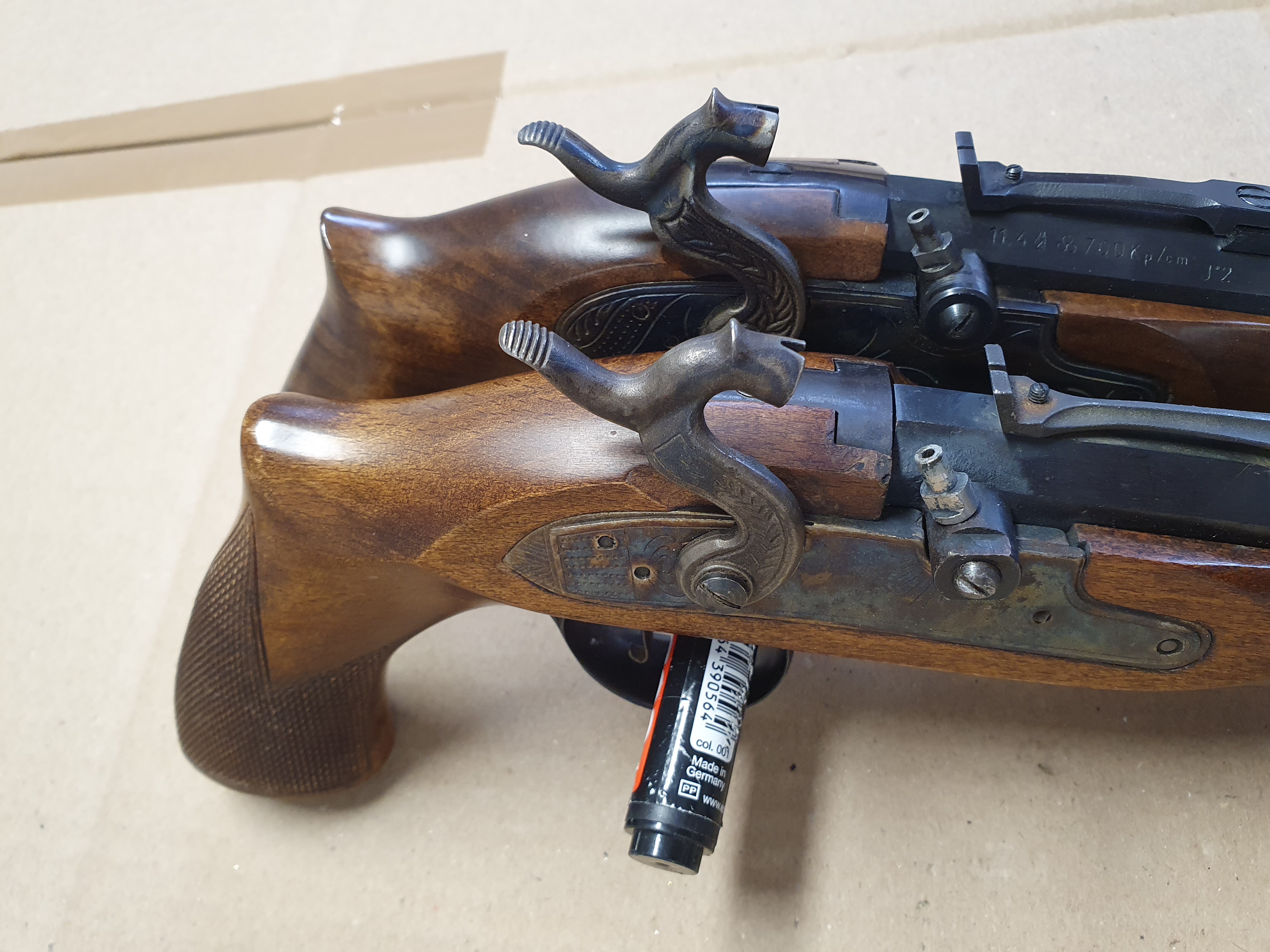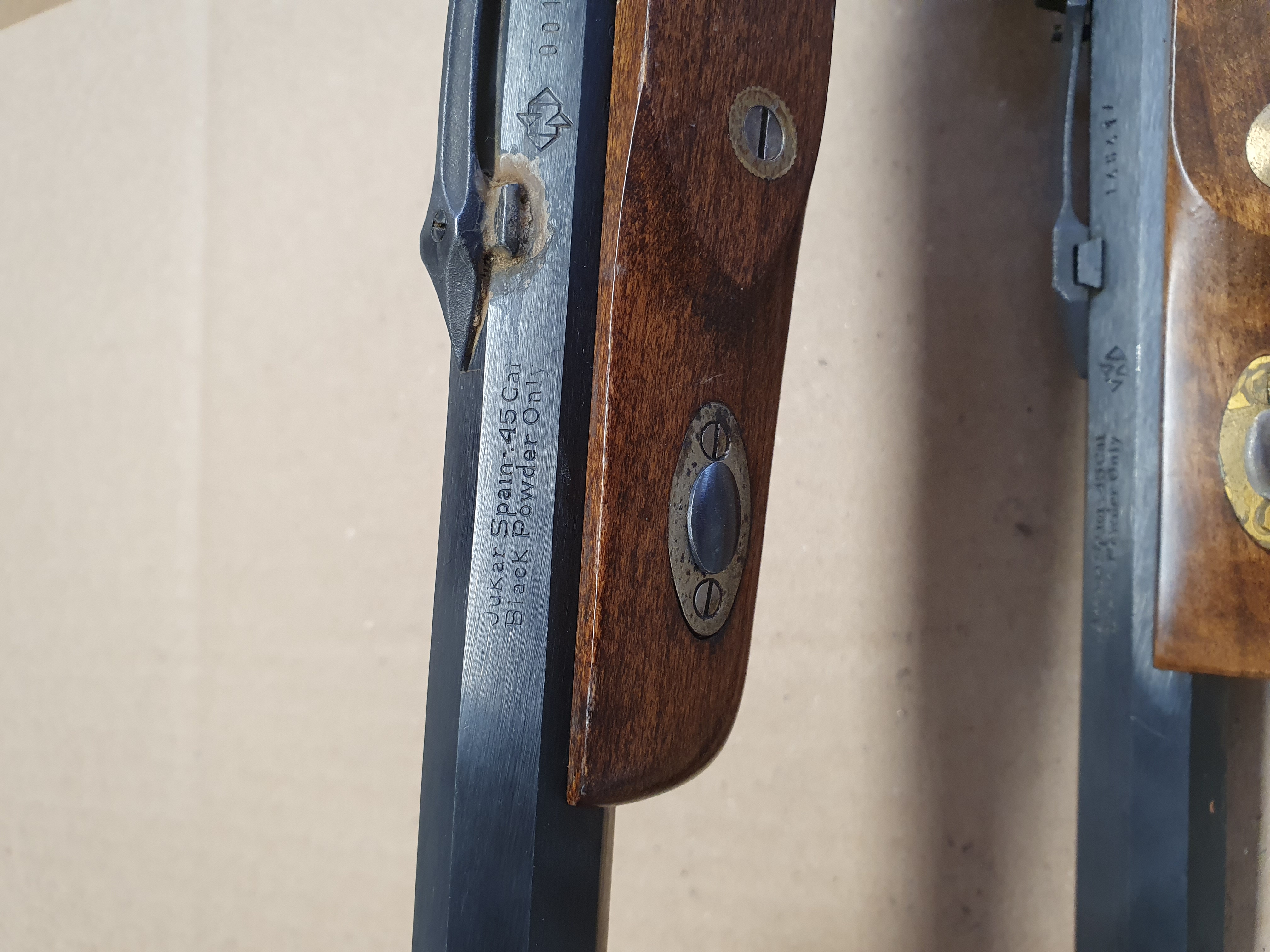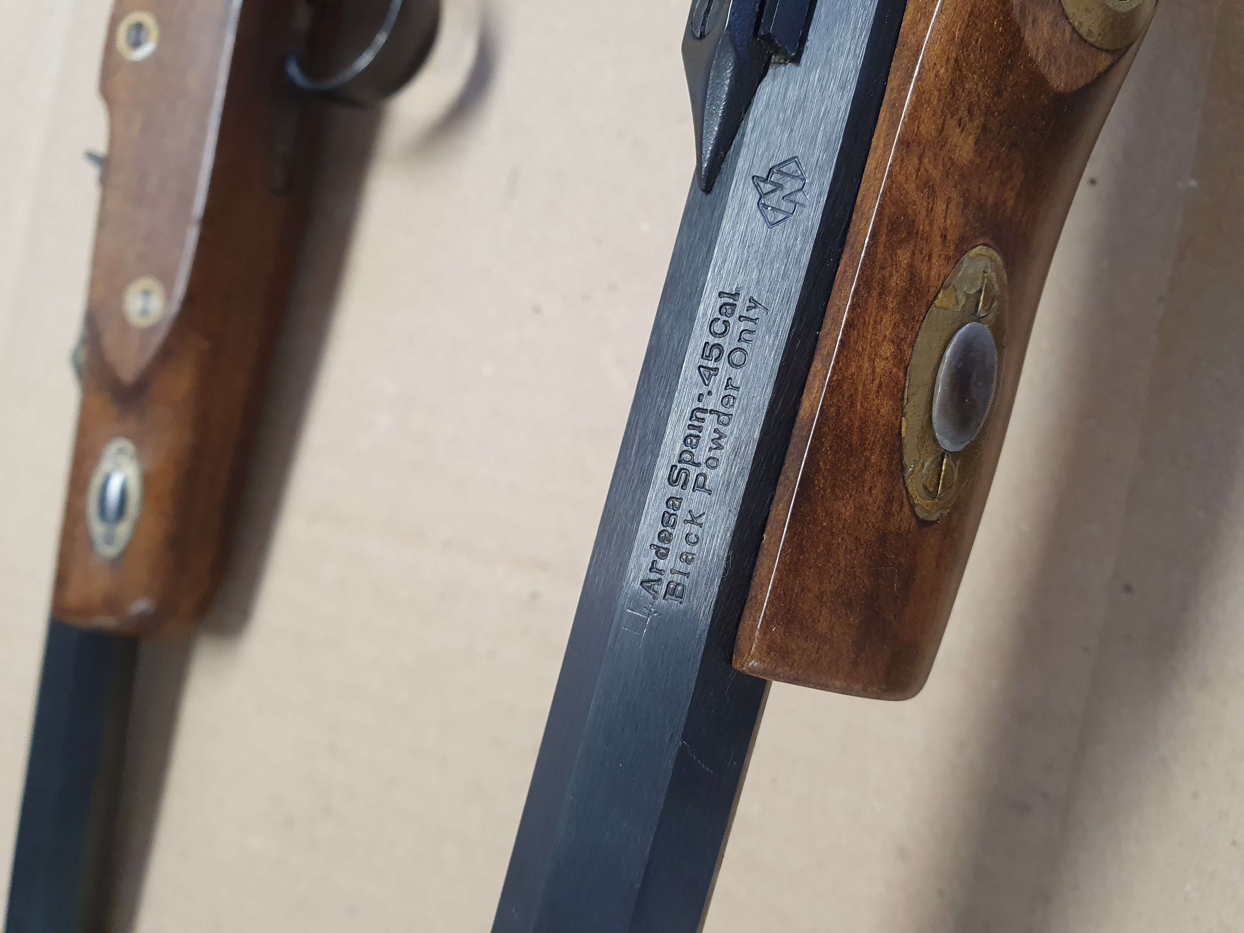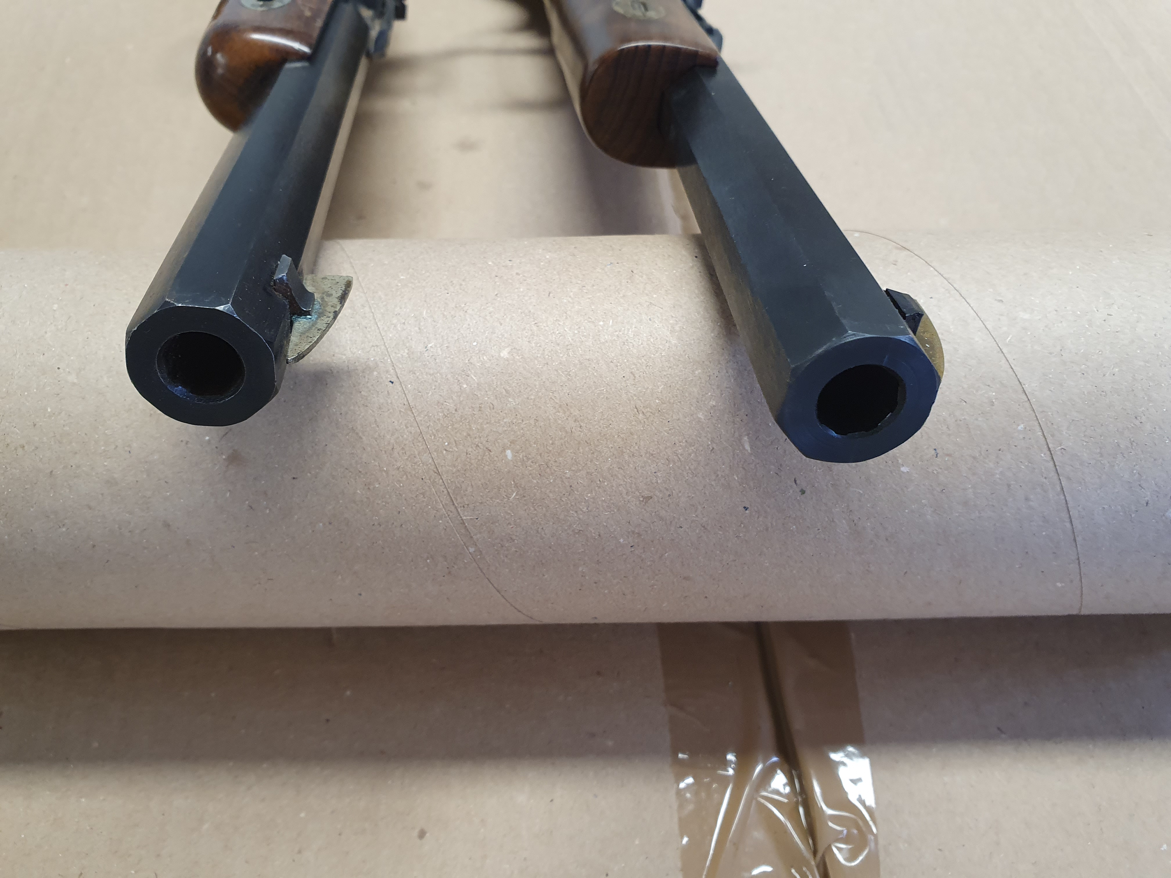 Zwei Stück Schwarzpulver Vorderlader Pistolen cal .45 Black Powder Only. Verschiedene Hersteller.