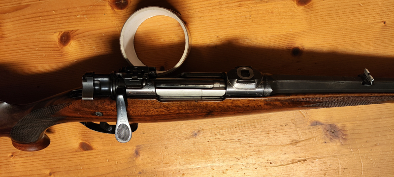 biete klassischen 98er,vermutlich Suhler Fertigung, Kaliber 8x57 IS. Die Waffe hat eine deaktivierte Pirschsicherung, Recknagel Feinabzug sowie eine 45 Grad Flügelsicherung. Schlossgang ist gut und der Lauf ist achtkant in rund übergehend sowie mit Laufschiene und EAW Schwenkmontage. Dazu passende Zielfernrohre sowie Sabatti Lochschaft in meinen anderen Auktionen.