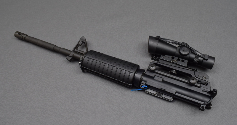 M4-Handschutz und einem Gasblock mit Picatinnyschiene versehen. Da sich die Picatinnyschienen des