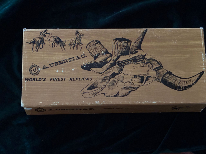 Ich biete hier einen Originalkarton mit Lagerspuren für einen (Navy) Colt der Fa. Umberti (Hege) an.