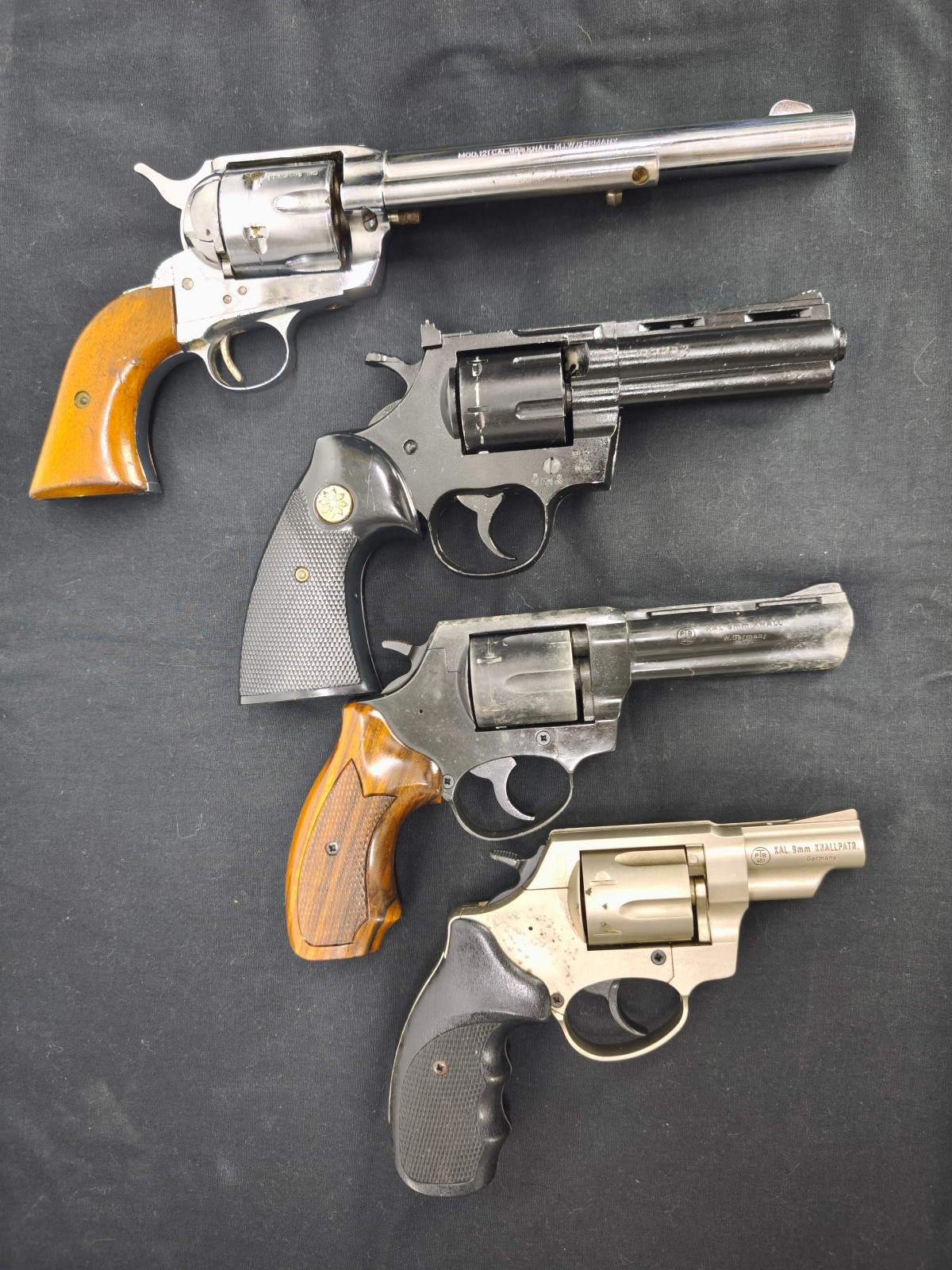 Aus Nachlass 1 Posten / 4 Stück freie ältere Revolver Cal.9 mm Knall