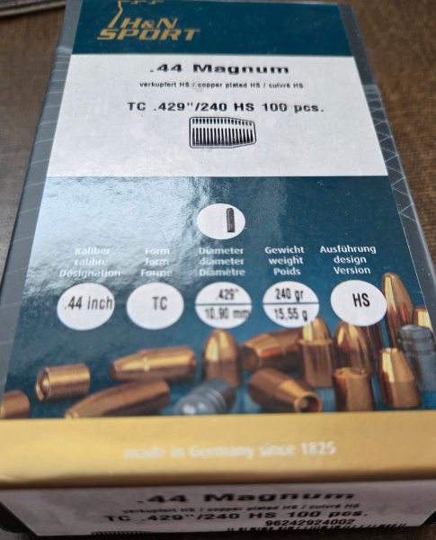 .44 Magnum H&N Geschosse HS .429 in 240gr, 100 Stück in ungeöffneter Originalverpackung