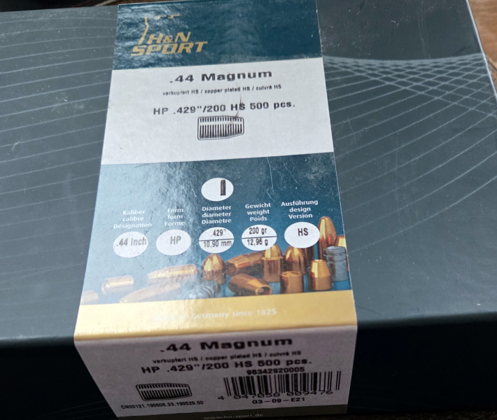 .44 Magnum H&N Geschosse HS .429 in 200gr, 500 Stück in ungeöffneter Originalverpackung