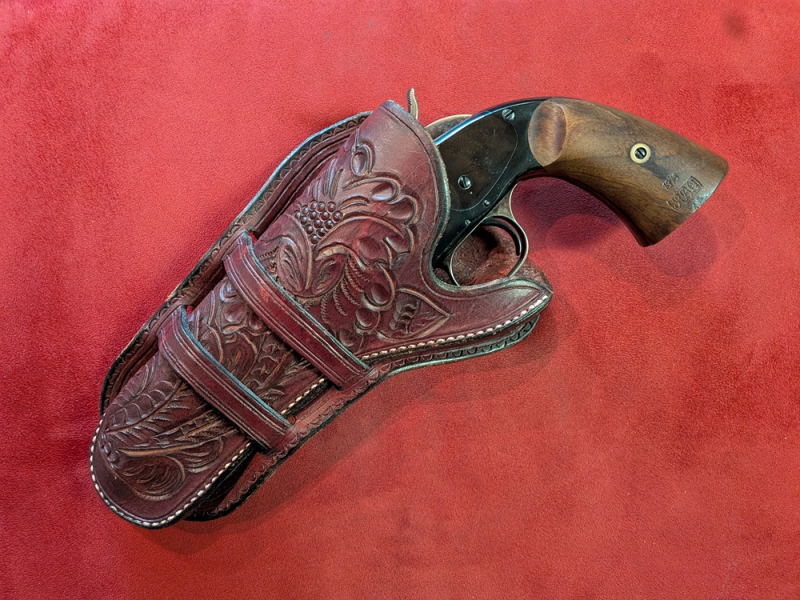 verkaufe: ein Old Style Mexican Loop Holster für Colt SAA u.ä. Revolver bis 5,5 inch Lauflänge - sehr schön floral punziert - der Hersteller des Holsters ist mir leider nicht bekannt - dunkelbraunes Leder - gebraucht mit Trage-/Benutzungsspuren (siehe Fotos!), keine Beschädigungen, voll verwendbar