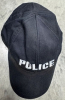 Artikelbeschreibung: Zum Verkauf steht eine gebrauchte schwarze Baseballkappe mit „POLICE“-Aufdruck in klassischem Design.