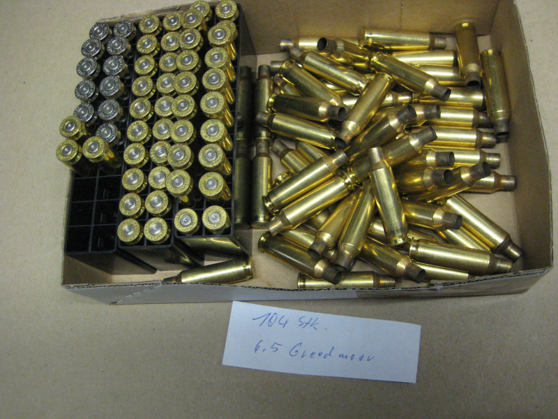 Biete 104 Stk. Hornady - Hülsen mit Boxerzündung im Kal. 6,5 Creedmoor nur 1x abgefeuert . Zust. s. Foto.
