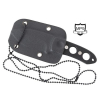 Im Lieferumfang ist eine schwarze Kugelkette sowie eine hochwertige Kydexscheide enthalten.