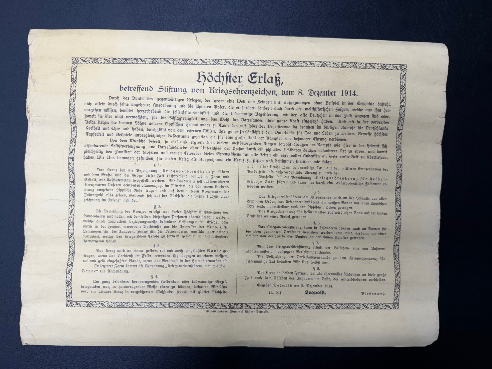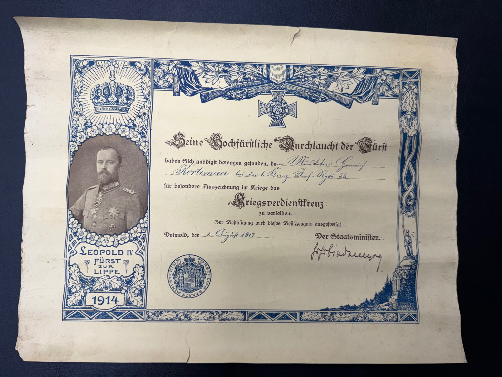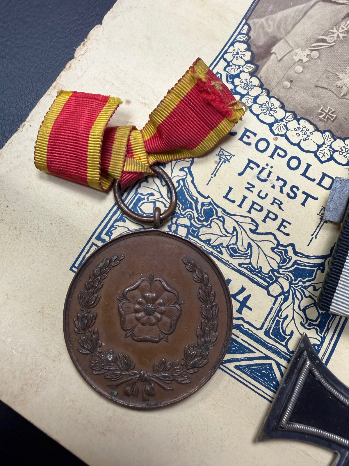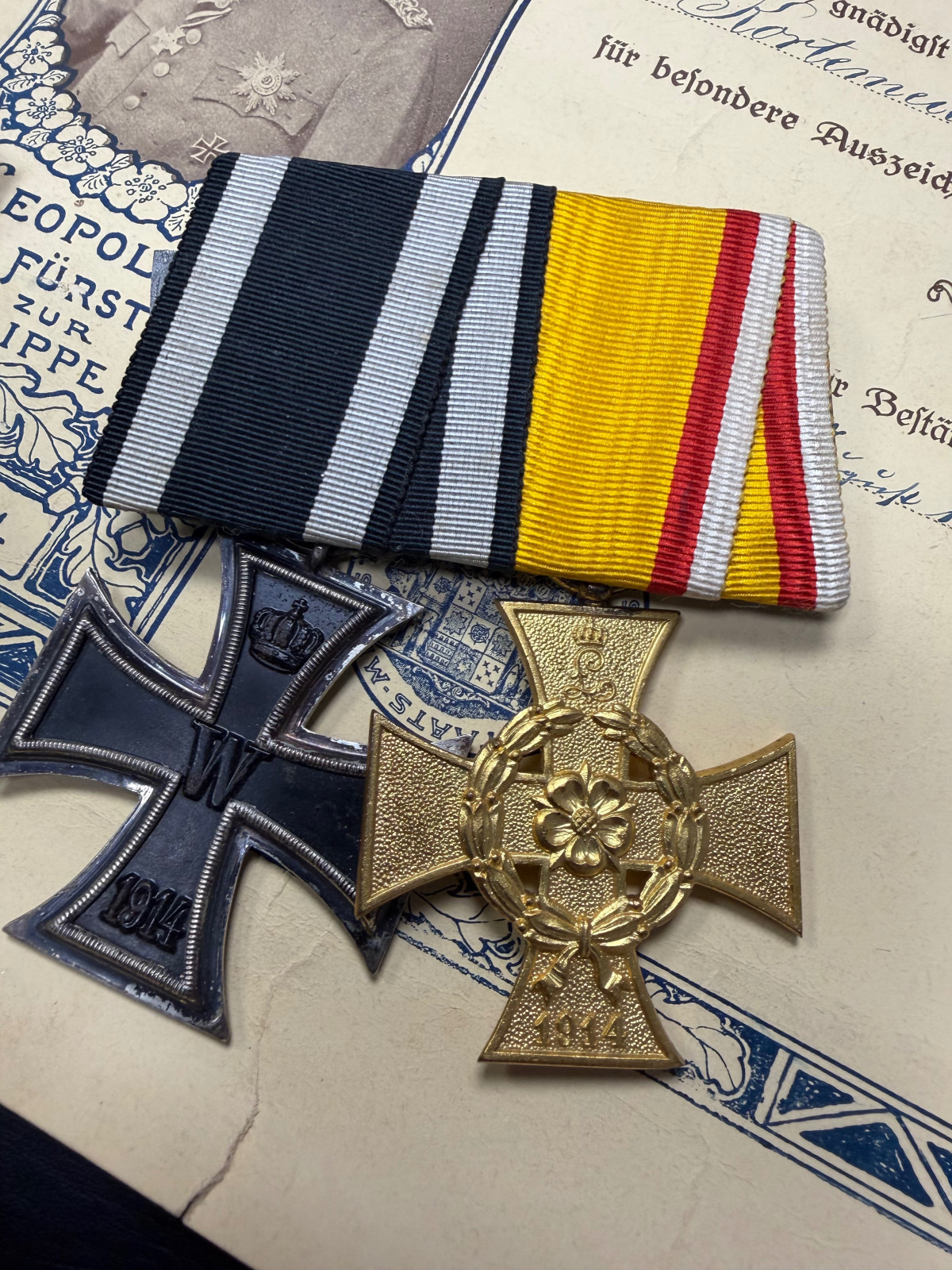 Nachlass Lippe Detmold-Ordenspange-Medaille-Urkunde-WW1