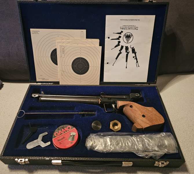 Biete aus Nachlass eine Sehr Schöne Matchpistole, die Pistole ist Verstellbar (Leistung) um Optimales Schussbild zu erzielen. (F im Fünfeck vorhanden)