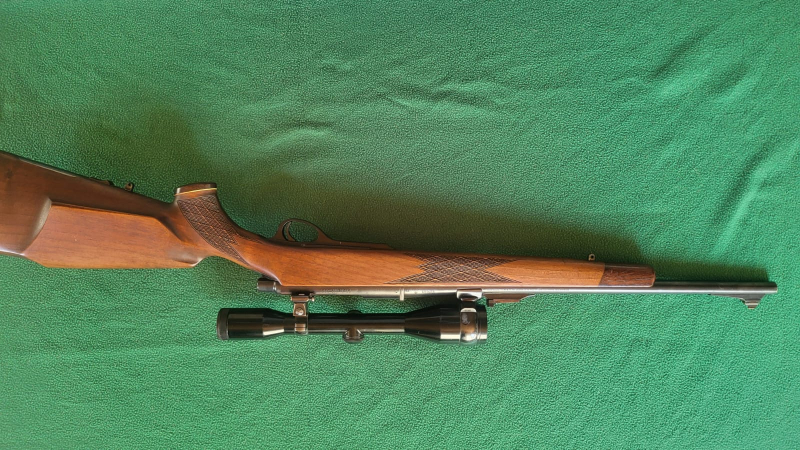 Remington Mohawk Kaliber .308 mit Zeiss Diatal 6x42, Absehen 1, auf einer 3-Punkt-Montage. Die Waffe verfügt über ein Schaftmagazin sowie einen trocken stehenden Flintenabzug. Sie ist äußerst führig und präzise und stammt aus einer Zeit, in der noch hochwertige Stähle verwendet wurden.