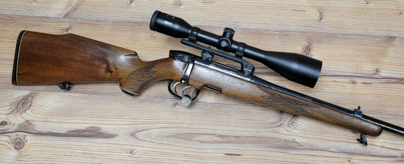 Der Schaft hat keine Risse, die Brünierung ist stellenweise fleckig. Am ZF sind die Linsen klar und ohne Kratzer.