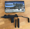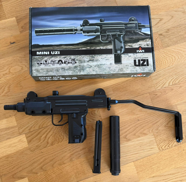 Die CO₂-betriebene Mini UZI im Kaliber 4,5 mm (.177) BB verschießt ausschließlich Stahlrundkugeln. Das Magazin fasst 28 Schuss. Die Waffe verfügt über ein Blowback-System, einen Metalllauf sowie einen klappbaren Schaft und einen aufschraubbaren Schalldämpfer.