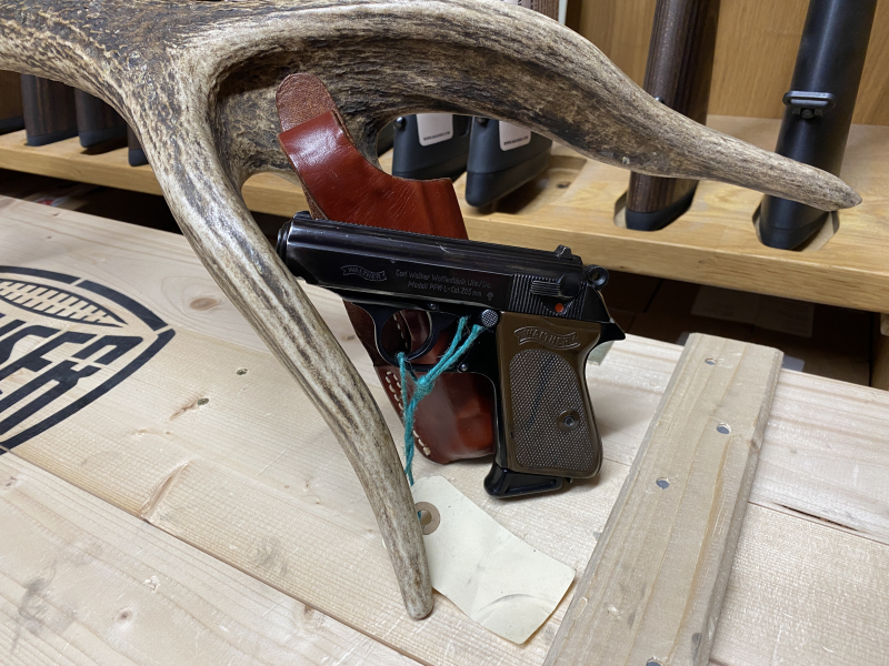 Zum Verkauf steht eine gebrauchte Pistole der Marke Walther Modell PPK im Kal. 7,65mm. Die Waffe ist technisch und optisch in einem guten gebrauchten Zustand, Gebrauchsspuren sind vorhanden. Zum Lieferumfang gehören ein Magazin sowie ein Lederholster.