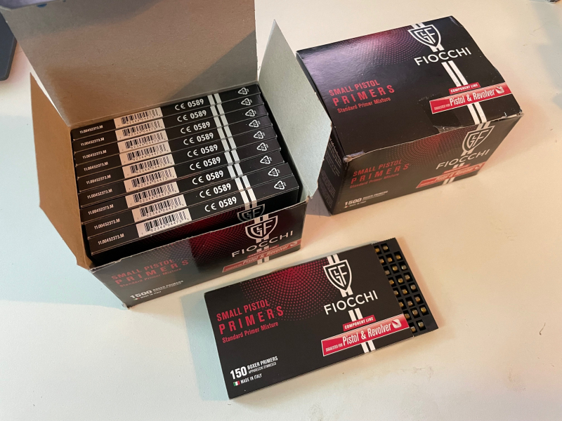 Ich biete hier neue und originalverpackte Fiocchi Small Pistol Primer (Zündhütchen) jeweils in der 150 Stück Verpackung.